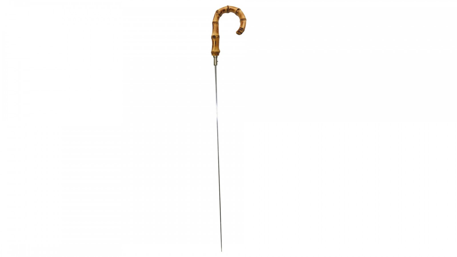 La dernière nouveauté en canne épée, ce véritable parapluie homme noir de grande envergure vous protégera de la pluie, mais pas que. La poignée courbe en véritable bambou se déverrouille du parapluie en un quart de tour et devient une épée. La lame épée est en métal plein de forme carrée et pointue au bout.