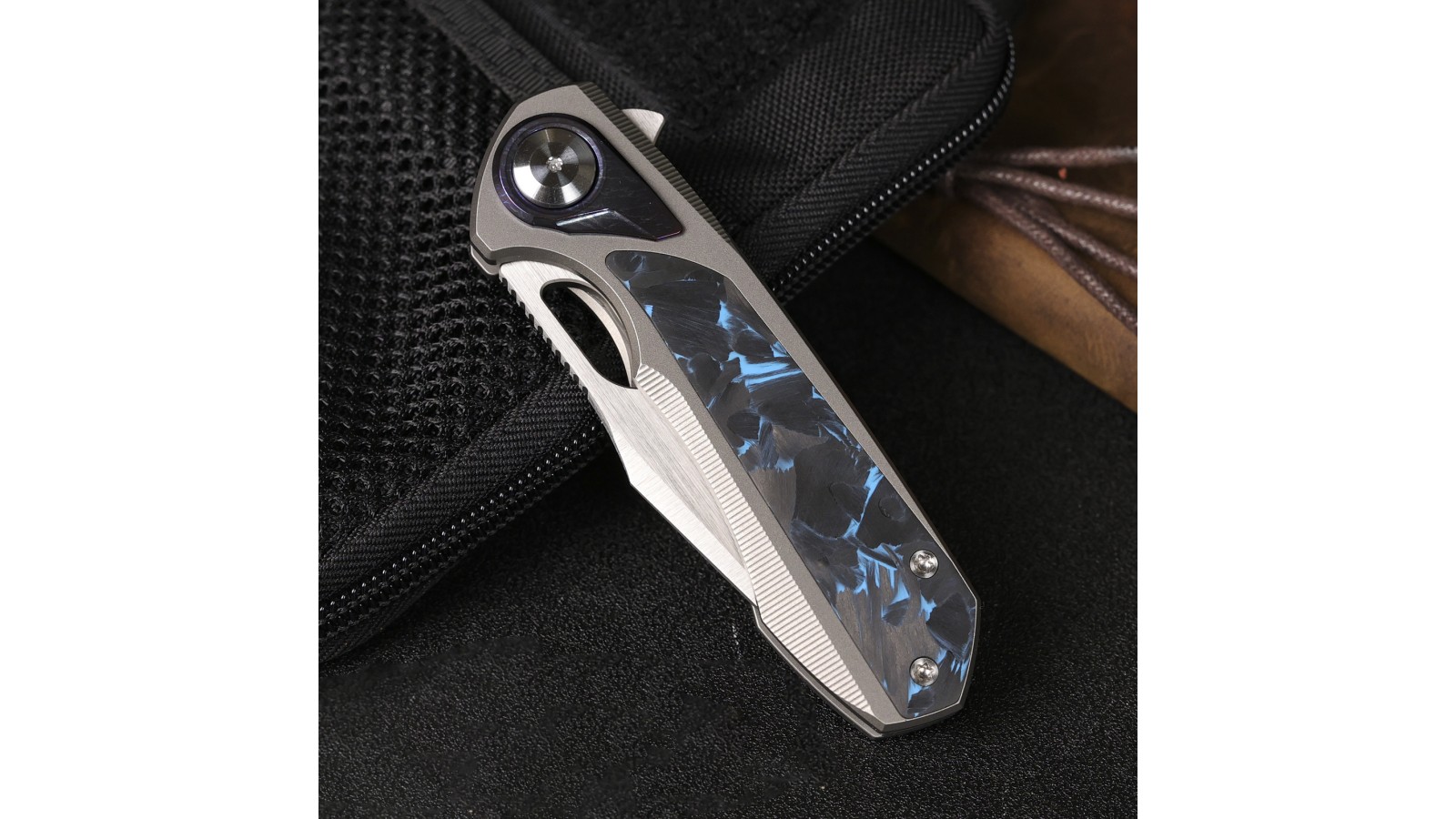 Le déploiement de la lame s'effectue via le flipper ou le thumb hole (orifice pour le pouce), vous offrant deux options selon votre préférence. Le pivot à roulements céramiques à billes encagés assure une ouverture d'une fluidité remarquable et d'une rapidité impressionnante. Vous ressentez immédiatement la qualité de fabrication dès la première utilisation. La collerette de pivot en titane anodisé entropique ajoute une touche esthétique personnalisée.